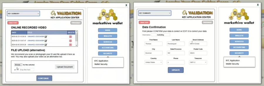 Once you've uploaded the video, please verify your name, address, and phone number on the Data Confirmation screen. Your address allows us to send you exciting Markethive merchandise, including hoodies, coffee cups, and even physical Hivecoins!