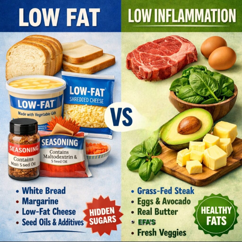 Today, nutrition research emphasizes the importance of quality fats — such as those from avocados, nuts, unprocessed meats, and fatty fish — for brain health, hormone regulation, and long-term metabolic stability. The real problem wasn’t fat — it was the replacement of natural fats with cheap, highly processed ingredients from corn and soy that can disrupt metabolism and lead to cravings.